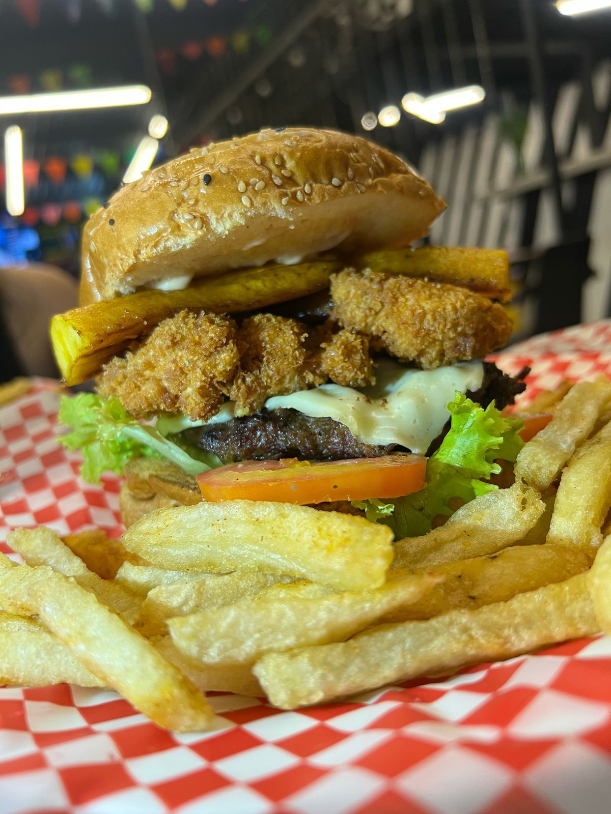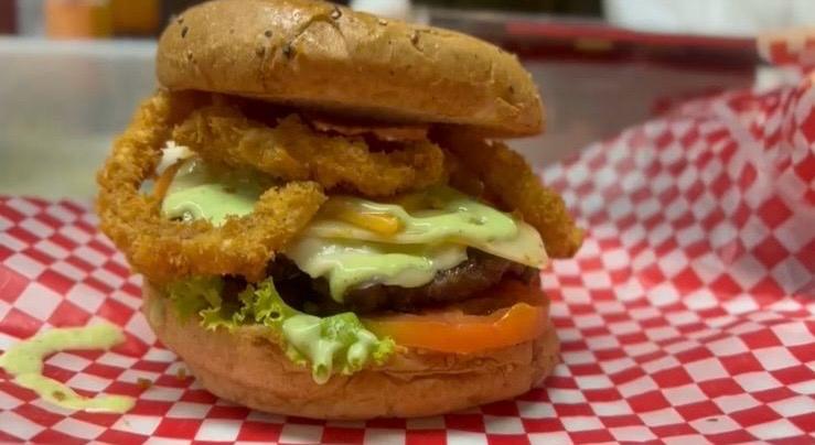 ¡La hamburguesa clásica con un toque callejero! Pan, carne 180 g, queso, tocineta, cebolla, tomate, lechuga y papas ripio.
