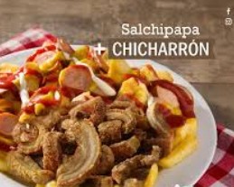 ¡La salchipapa que es una verdadera fiesta de sabores! Papas, salchicha ranchera, maduro, queso con maicitos, pollo, tocineta y guacamole.