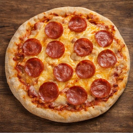 Rodajas de pepperoni madurado, ligeramente picantes y crujientes, sobre una base de abundante queso mozzarella.
