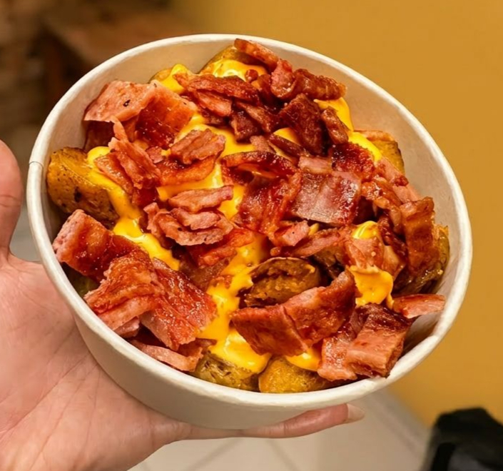 Papas, tocineta, queso cheddar para 2 personas.
