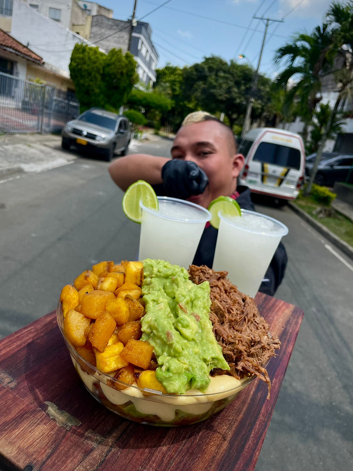 300 gr de papas, costilla ahumada picada, maduro picado, maiz tierno, papa criolla, queso mozarella, salchicha sevilla picada, salsas, producto para 1 persona.
