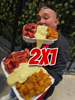 Salchi para 2 (papa Criolla,, Ranchera, quesos, Carne desmechada, Maduro, Guacamole y salsas)