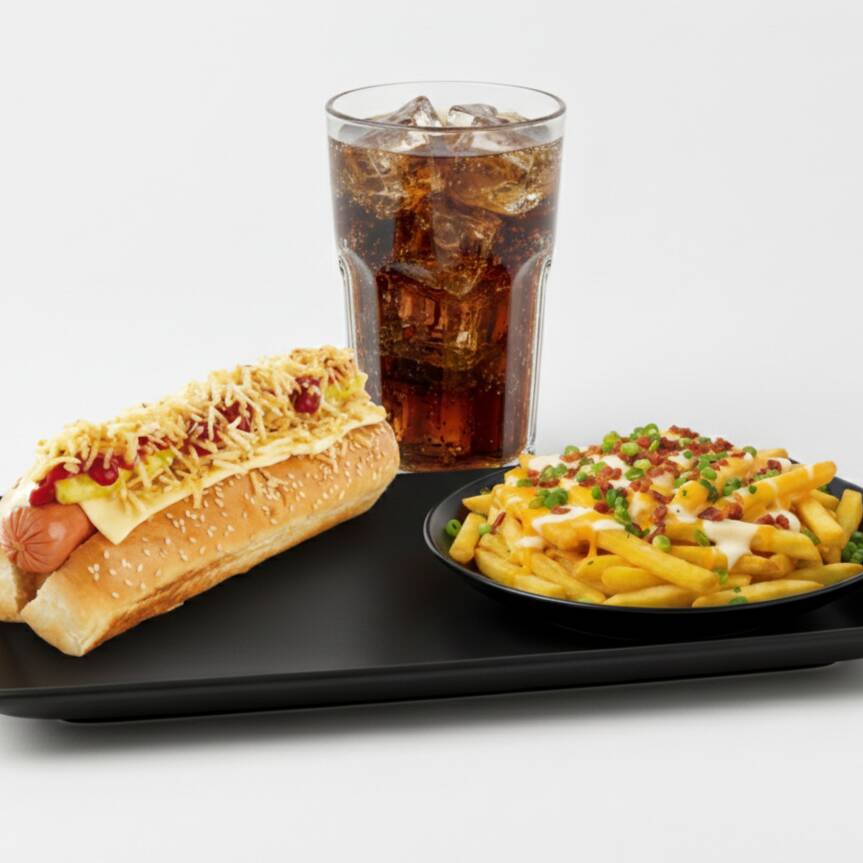 Perro clasico + cheese fries with bacon jr + gaseosa