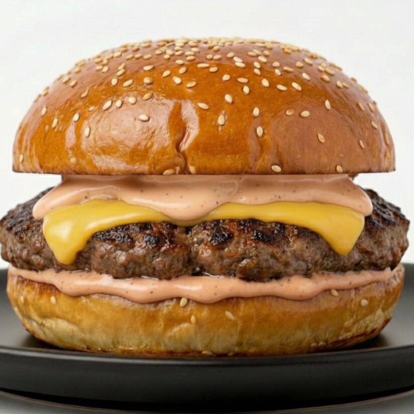 pan brioche, carne Angus (100 gr), queso tipo cheddar, salsa sweet smoke.