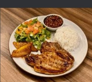 Proteina a elección acompañada de: Frijoles, arroz, ensalada, maduro y jugo del día