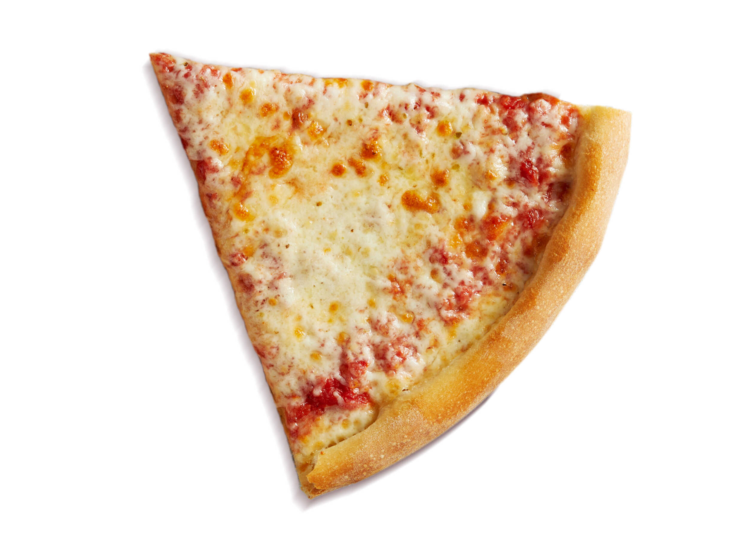 Porción de pizza con masa fresca preparada a mano, salsa de tomate estilo san marzano, queso mozzarella y queso parmesano, porción personal.