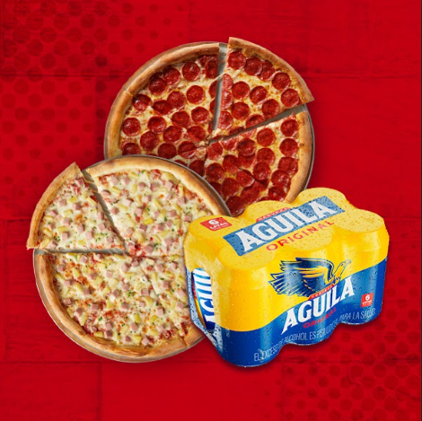 2 Pizzas M Sencillas + 1 Sixpack Aguila