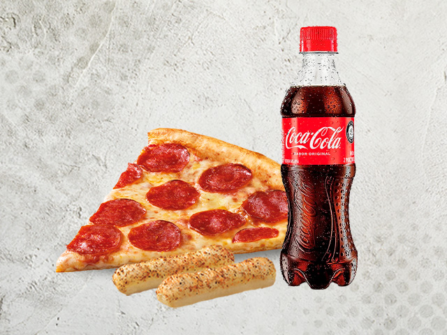 Slice pizza sabor a elegir con 2 Breadsticks y Coca Cola 300 ml.