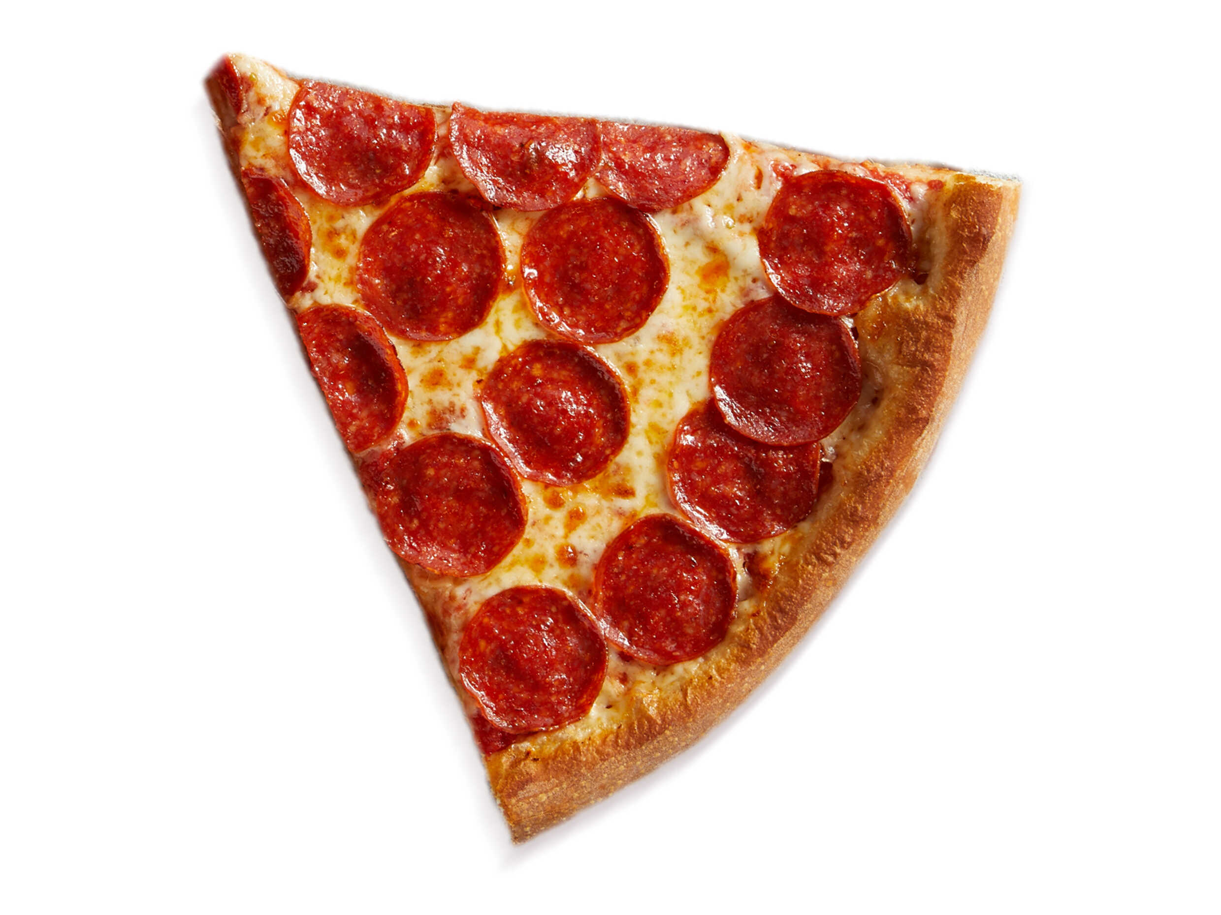 Porción de pizza con masa fresca preparada a mano, salsa de tomate estilo san marzano, queso mozzarella, queso parmesano y pepperoni, porción personal.