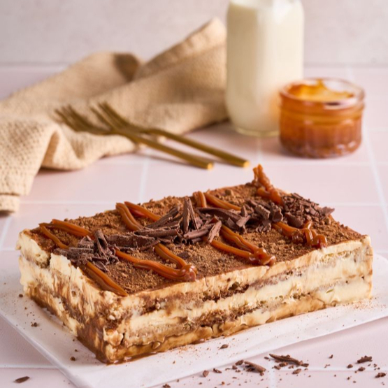 Receta clásica italiana, tres capas de bizcocho embebido en café y licor combinado con crema a base de queso Philadelphia.