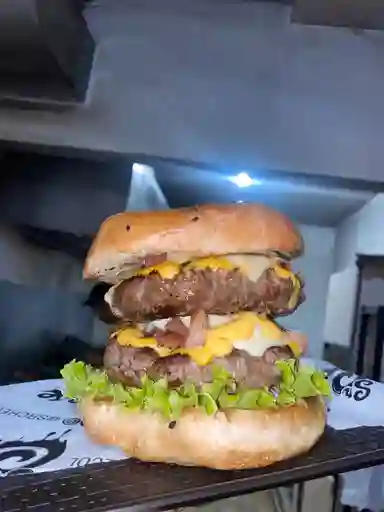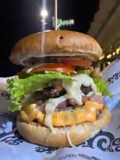 Pan brioche, doble carne 420 g, doble tocineta, doble queso doble crema, lechuga, tomate.