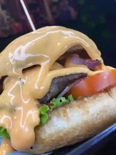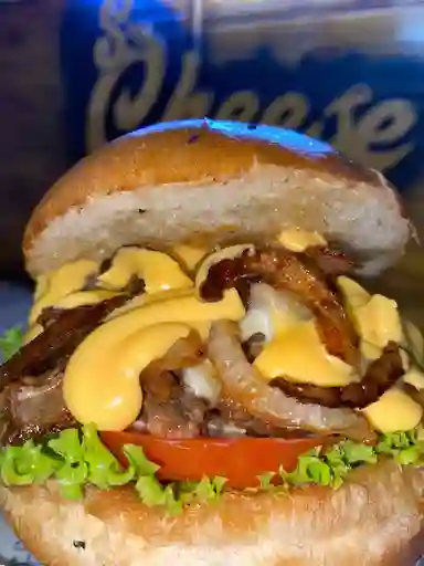 Hamburguesa con pan brioche, 210 g de carne, queso cheddar, tocineta, queso doble crema, lechuga, tomate y cebolla.