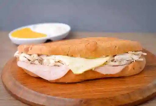 Sándwich a elegir (tocineta, hawaiano, ropa vieja, carne, básico), con gratinado de la casa.
