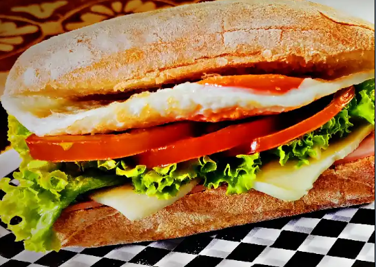 Huevo, lechuga y tomate, jamón, queso mozzarella.