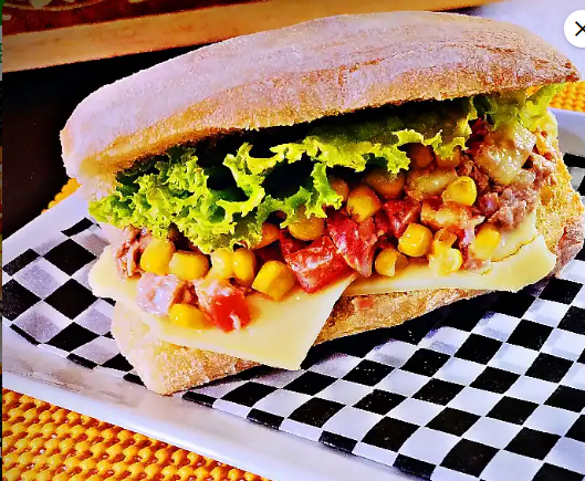 Atún, maíz, tomate, lechuga, cebolla y queso mozzarella.