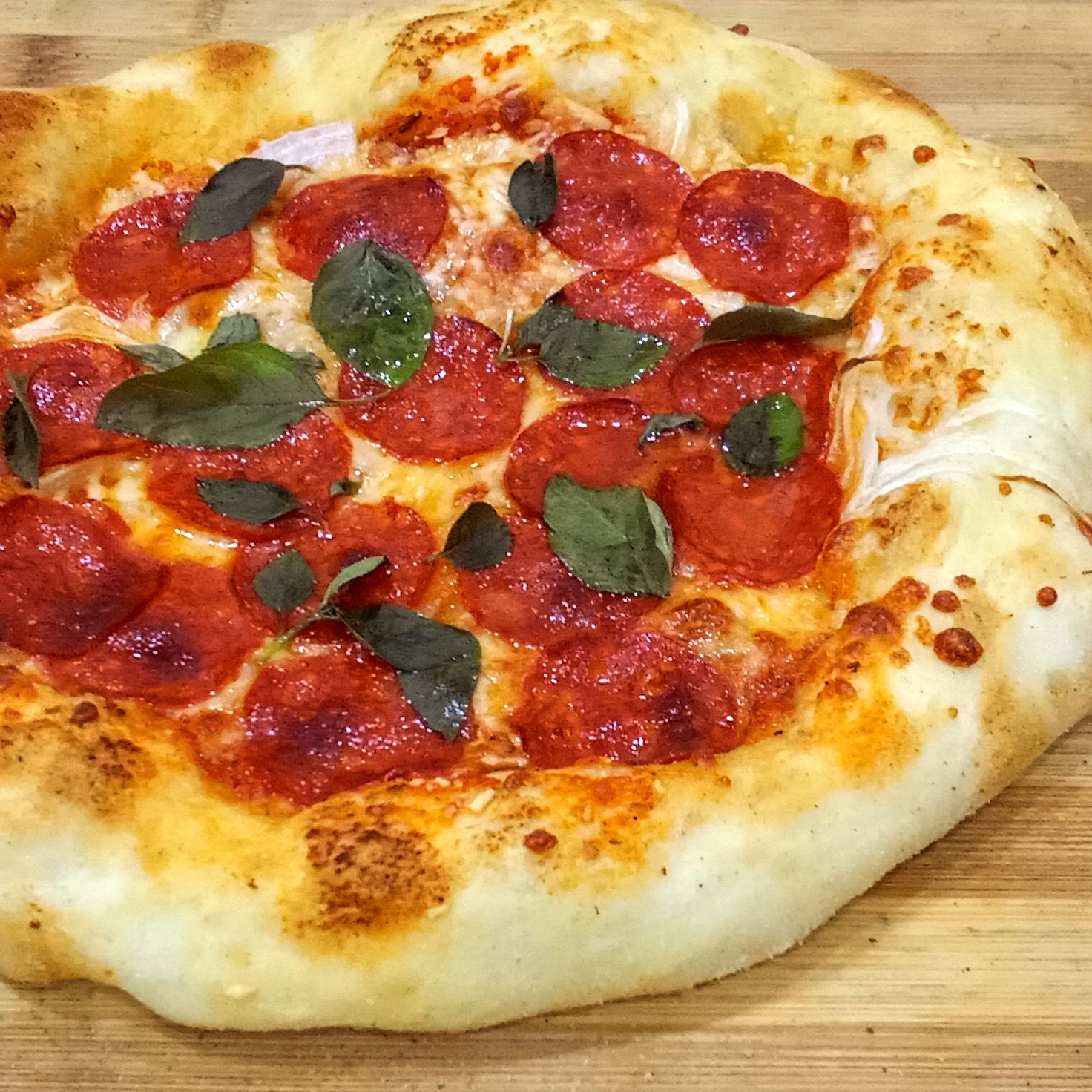 Pepperoni picante. mozzarella, salsa de tomate. albahaca fresca