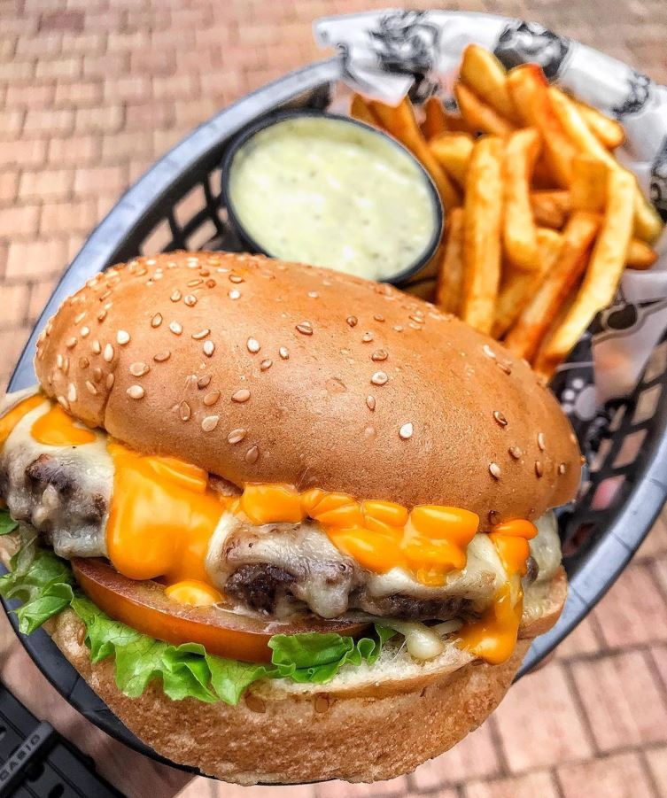 Carne de su elección, doble queso mozzarella, doble queso cheddar, verduras y pan artesanal.