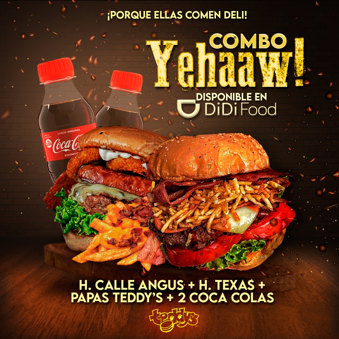 Combo Yehaaw 2hamburguesas+Papas Teddys+2cocacolas