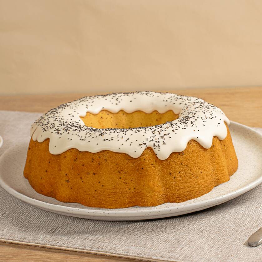 El agradable sabor de las crujientes semillas de amapola hacen de esta torta la mejor manera de comenzar el día. Pequeña 12 porciones.