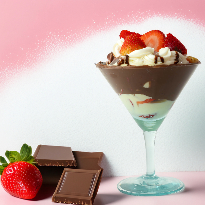 Fresas, crema de leche de la casa, chantilly 2 toppings y salsa a elección. Envase de 14 onzas.