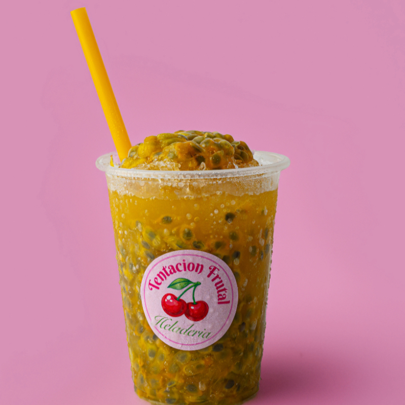 Maracuyá en pulpa, hielo granizado y un toque de dulce. En envase de 16 onzas.