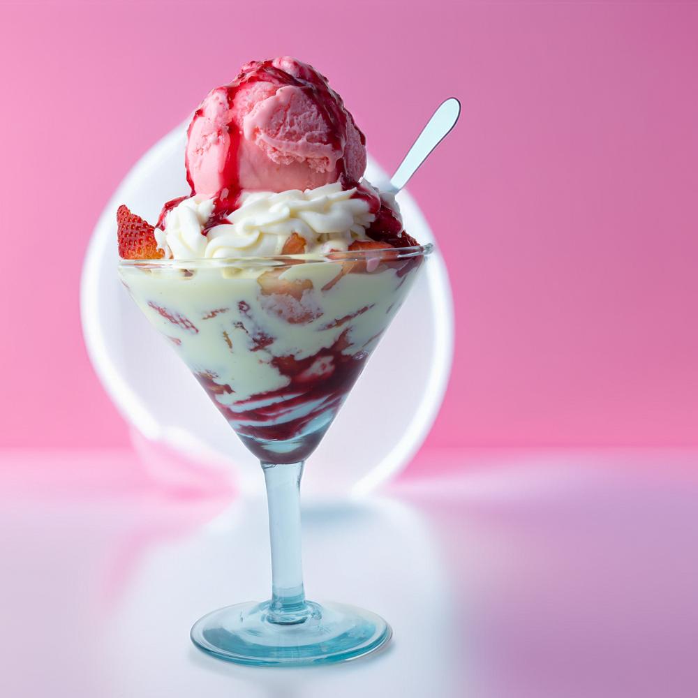 Fresas, crema de leche, chantilly, helado vaso 12 onz