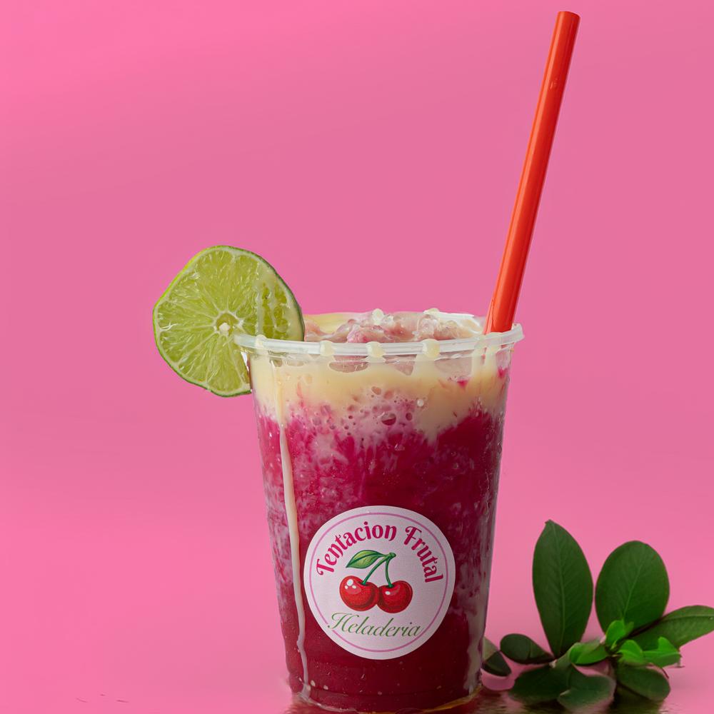 Fresas, crema de leche, chantilly, queso rallado vaso 12 onzas