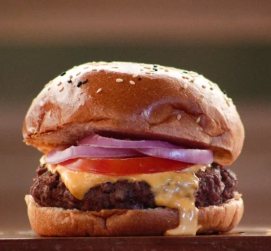 Pan orégano, carne 100% angus, queso cheddar, cebolla asada, queso fundido y salsa de queso cheddar.