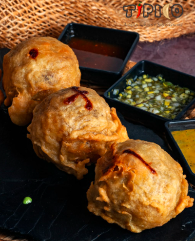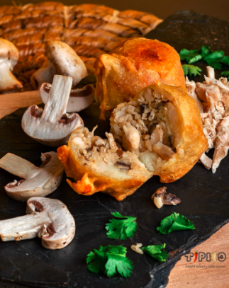 Deliciosa papa rellena con carne desmechada, chicharrón y maduro
