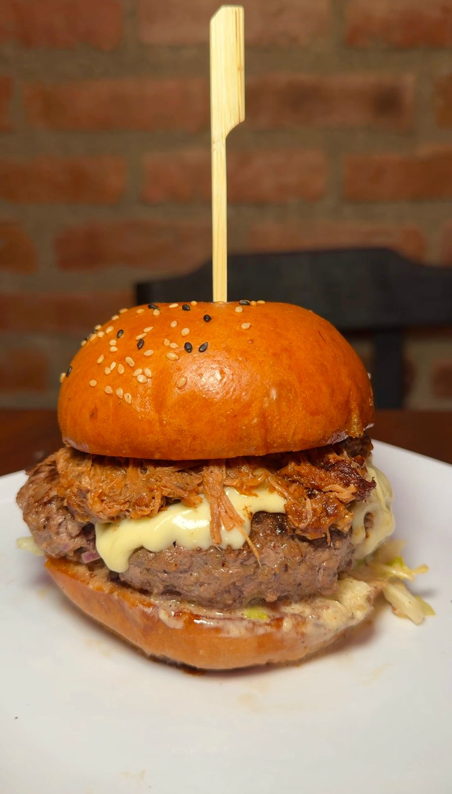 Dos Deliciosas Hamburguesas Mela con pan brioche, deliciosa carne 100 % Angus, carne de cerdo desmechada bañada en salsa BBQ, fusión de queso gratinado, cebolla crispy, tomate, lechuga y salsas.