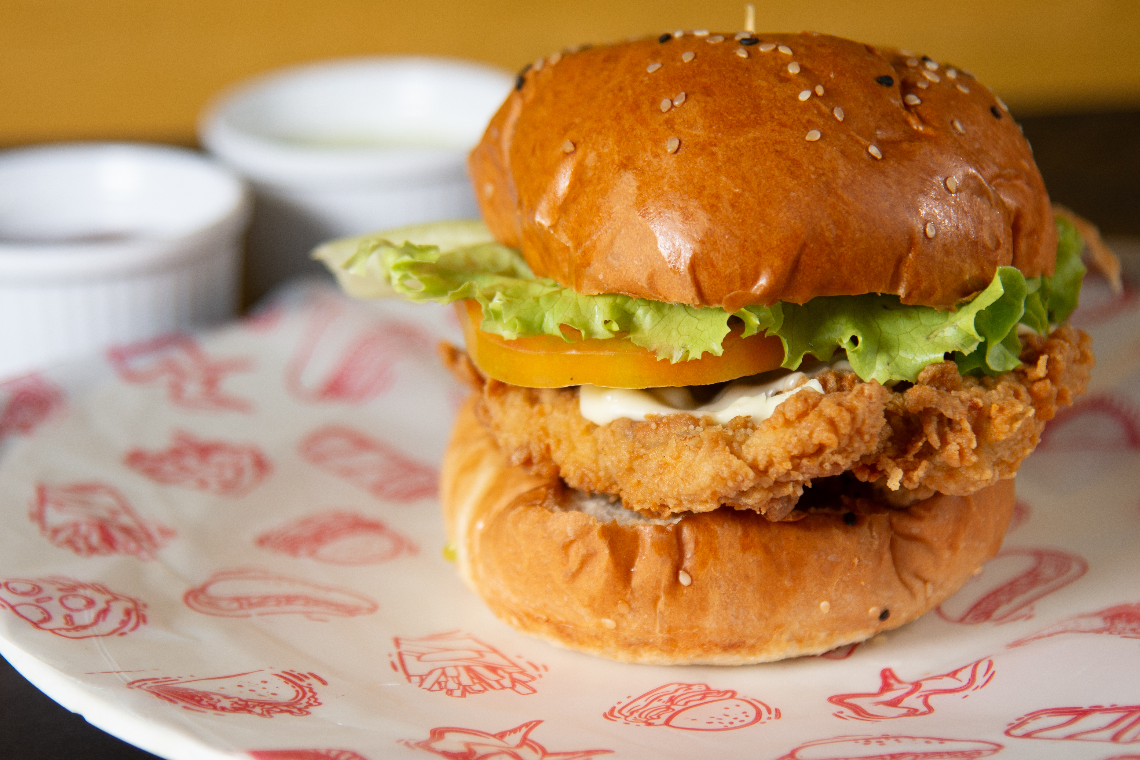 Dos Deliciosas Hamburguesas Chicken con pan brioche, pechuga de pollo crujiente o asada, fusión de queso gratinado, lechuga, tomate y salsas.