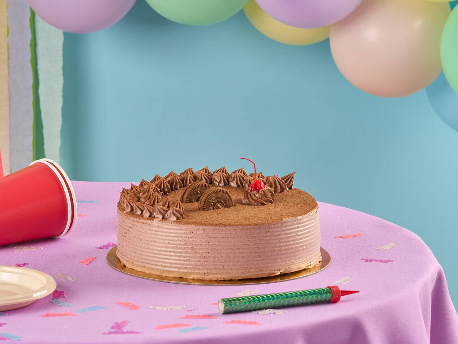 Torta de chocolate remojada con una deliciosa mezcla de tres leches sabor a milo. Decorada con crema sabor a milo intenso, un chocolate y cereza natural.