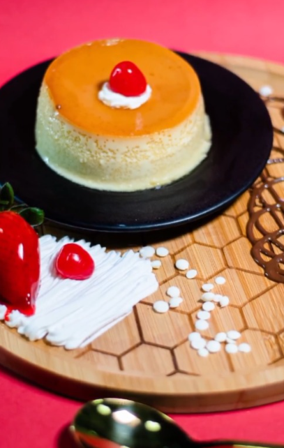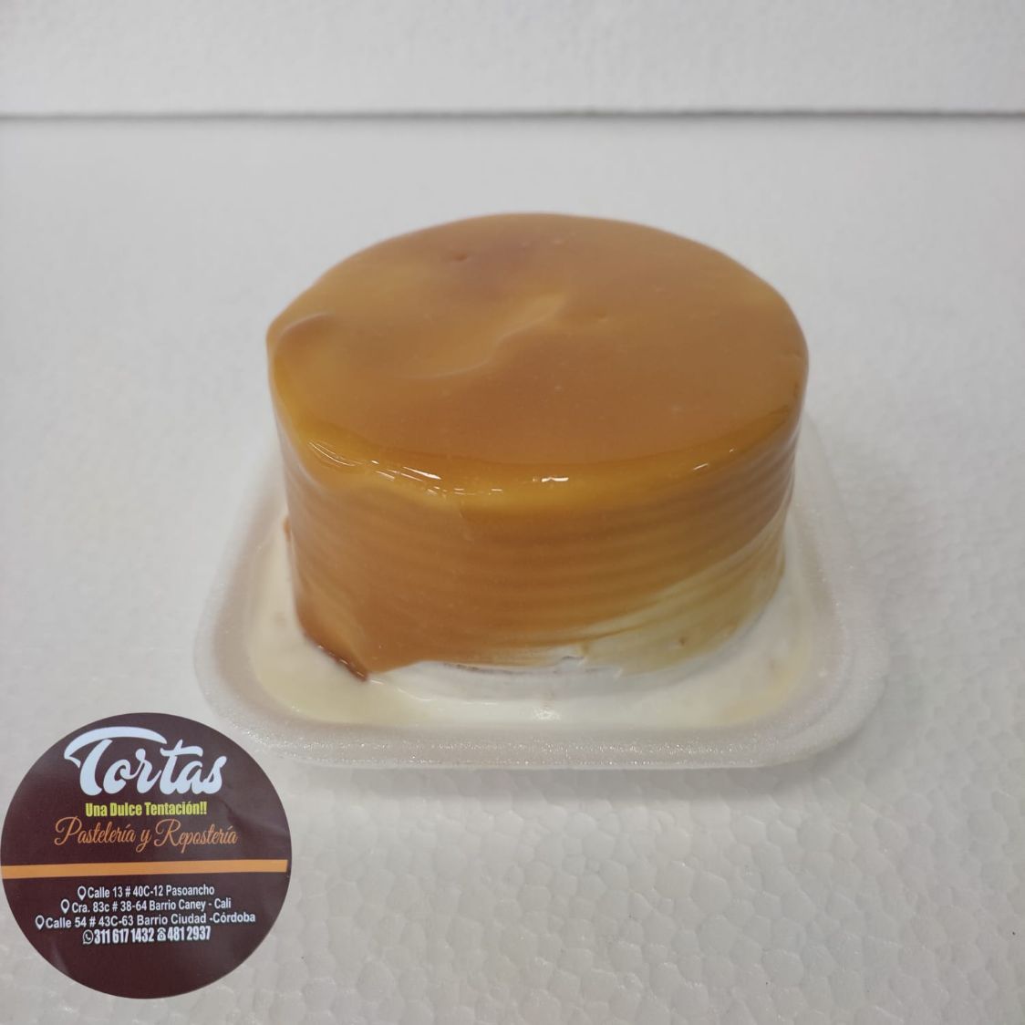 Combinación de 2 sabores mitad bizcochuelo de vainilla bañado en tres leches y mitad flan de caramelo, cubierta en crema chantilly, bañada en salsa de arequipe: huevos, agua, premezcla a base de harina, sal, azúcar, esencia artificial de vainilla.