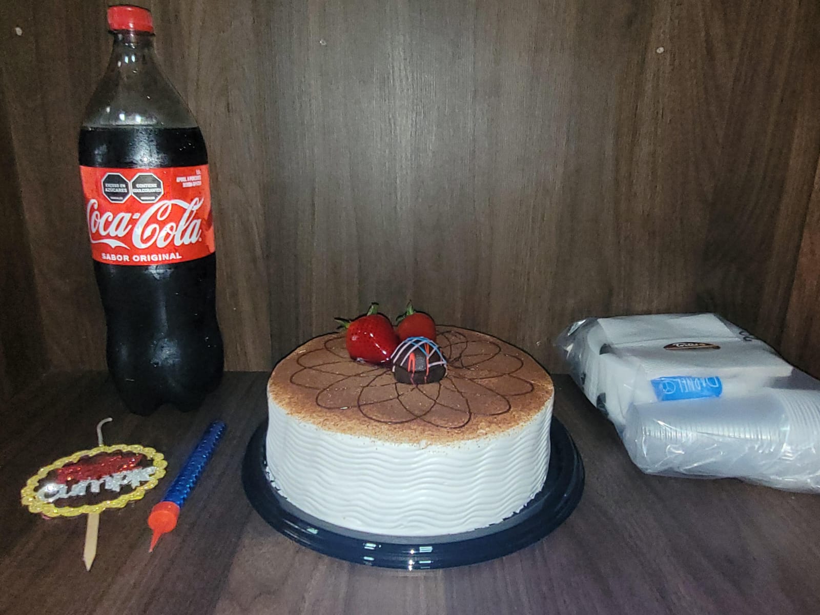 Combo Cumpleaños acompañado de Torta Genovesa Tradicional ½ Lb, Coca Cola Original 1Litro Medio, Vela Volcan, Feliz Cumpleaños, 20 platos, 20 vasos y 20 cucharas y 40 servilletas.