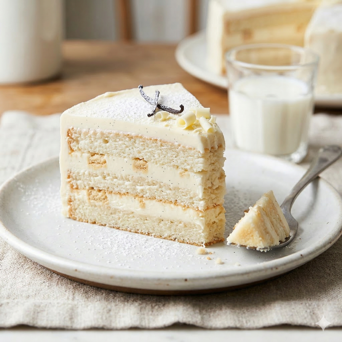 Torta de vainilla, leche entera y mermelada de frutos rojos.
