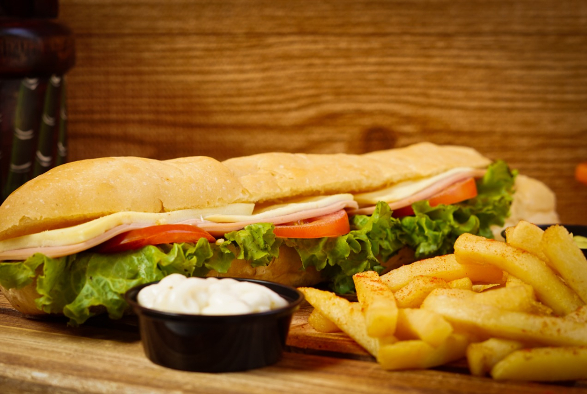 Salsa de la casa, lechuga, tomate, doble queso y doble jamón.