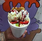 Queso rallado, trocitos de fresa, crema artesanal y 2 bolas de helado.