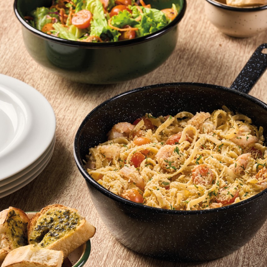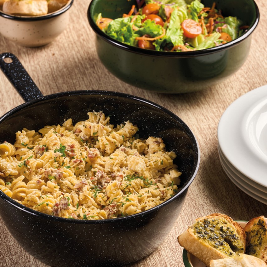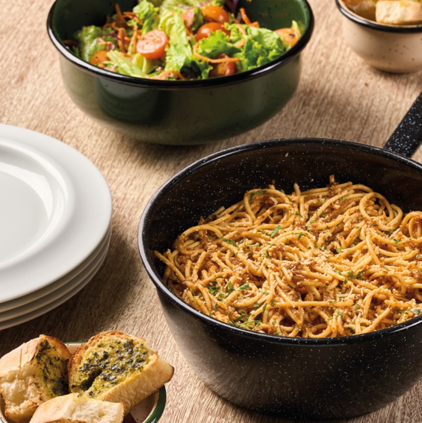 ¡Come en grupo y paga menos! Recomendado para 4 personas. Este menú contiene Pasta + Ensalada + Pan.