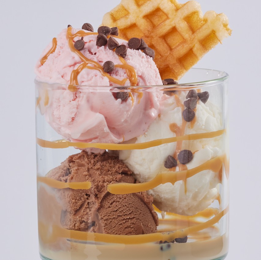 Elige 3 sabores de helado, salsa a elección y cerezas.
