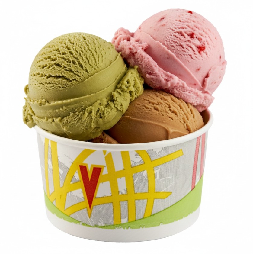Contenedor de 12 bolas de helado. Puedes elegir 3 sabores de tu preferencia.