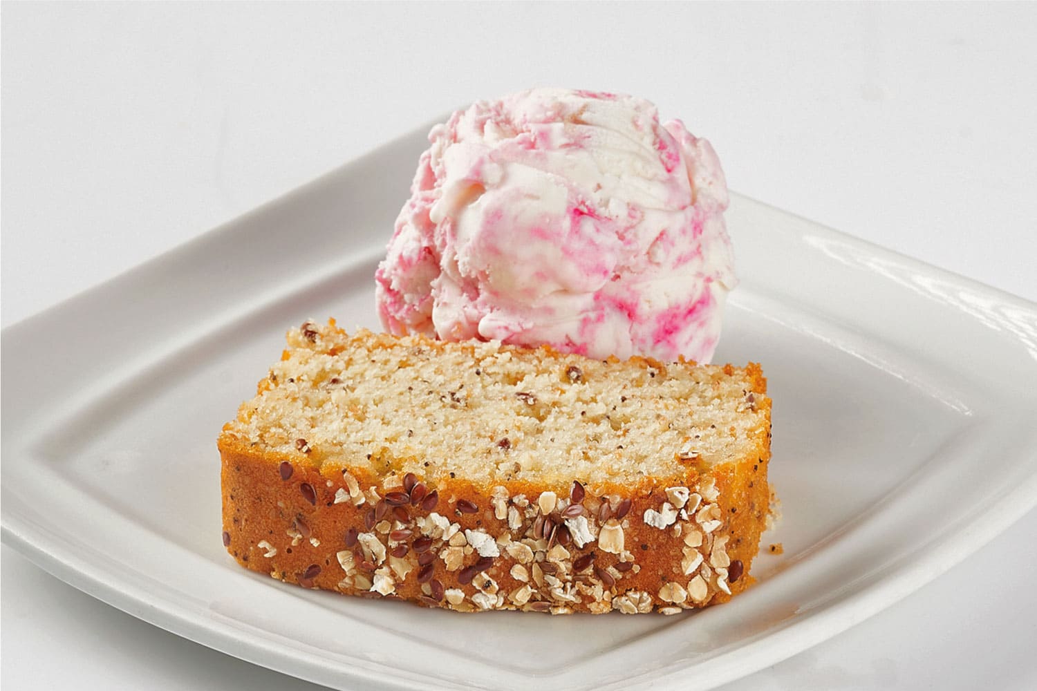Helado de yogurt con salsa de mora, torta de vainilla, zarzamoras y frambuesas. 10 Porciones Aprox
