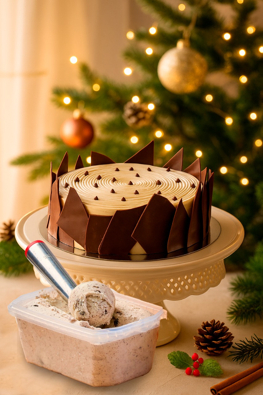 Torta artesana y litro de helado de sabor a elección. 10 Porciones.