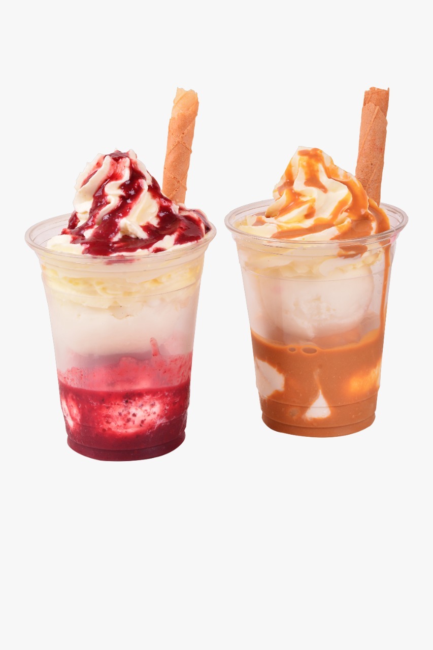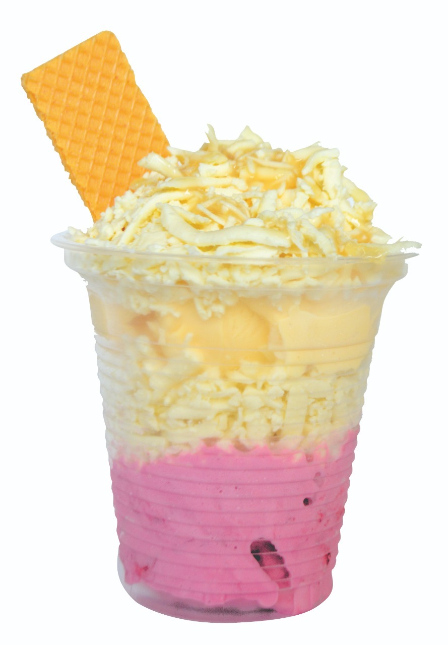 Vaso queso lleva dos sabores de helado dos porciones de queso salsa vaso queso barquillo y leche condensada sale en vaso gol de 12 onzas