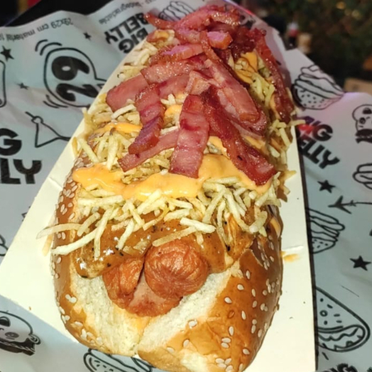 Sin duda alguna el mas grade, salchicha Americana en Pan Brioche, pierna de cerdo desmechado aderezada en nuestra salsa Bbq de la csa, queso mozarella, tocineta premiun, cebolla caramelizada, ripio de papa, salsa de la casa y piña