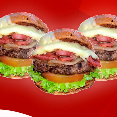 3 Hamburguesas, de las Famosas de la casa, 180gr de Carne Angus en Pan Brioche, lechuga crespa, tomate fresco, cebolla caramelizada, tocineta premiun, salsa de la casa, ripio de papa y queso mozarella