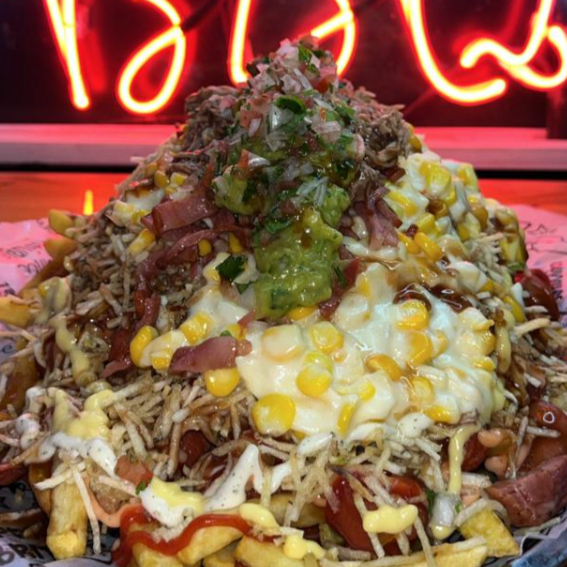 Una creación gigante para 6 personas, solo para valientes: papa a la francesa crocante, salchicha sabrosa, ripio, carne y pollo desmechados, tocineta brutal, maíz dulce, pico de gallo fresco y nuestro guacamole de la casa. Todo cubierto por una avalancha indomable de queso derretido y las salsas de la casa. Un plato tan grande, tan cargado y tan sabroso… que no se come: se enfrenta.