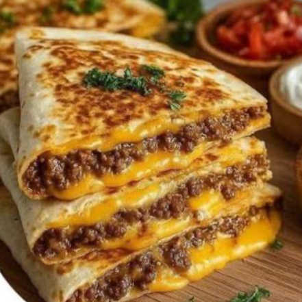 La entrada perfecta para compartir, toritall grande de trigo rellena de sour cream pollo desmechado, guacamole de la casa y queso mozarella, acompañada de guacamole y pico de gallo de la casa