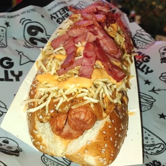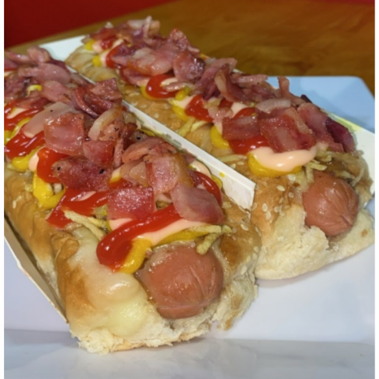 Sin duda alguna el mas grade, salchicha Americana en Pan Brioche, pierna de cerdo desmechado aderezada en nuestra salsa Bbq de la csa, queso mozarella, tocineta premiun, cebolla caramelizada, ripio de papa, salsa de la casa y piña
