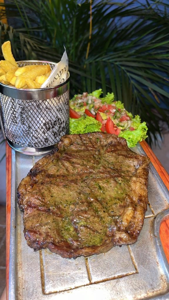 250Gr de Lomo Caracho a la parrilla en su mejor corte, acompañado de papa francesa y ensalada