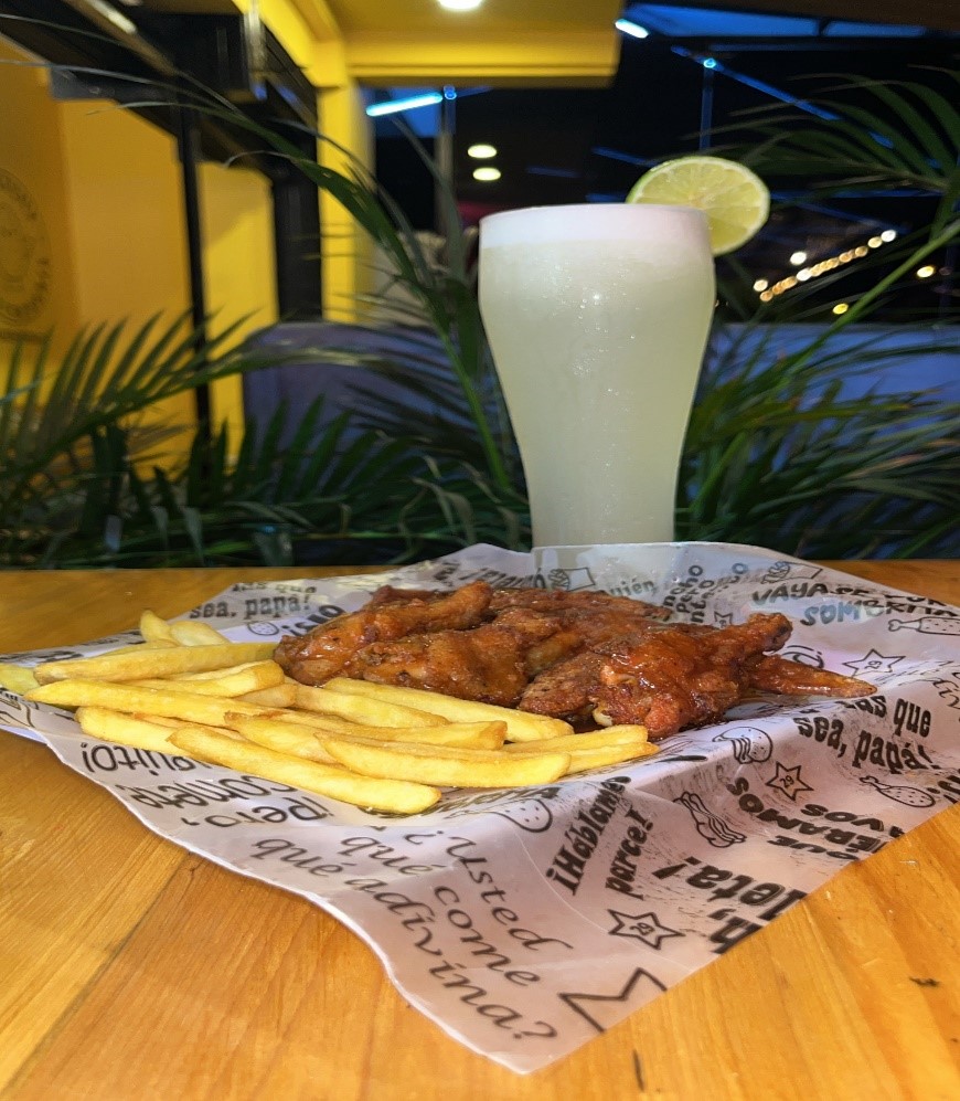Deliciosas alitas x 6, acompañadas de papa a la francesa + limonada natural